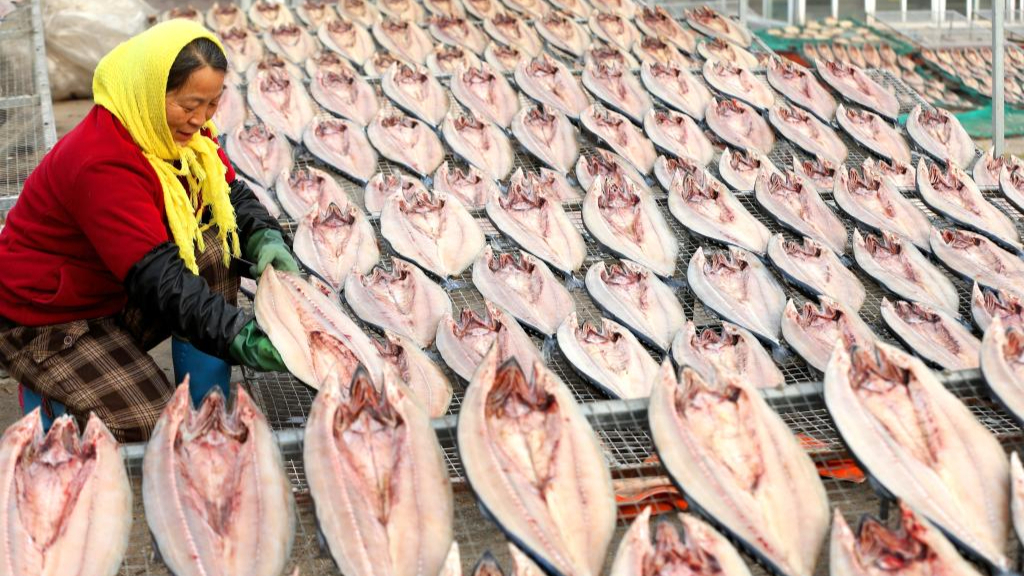 សង្កាត់ Jimo ​ខេត្ត ​Shandong ៖​ ​អ្នកនេសាទ​មមាញឹក​នឹង​ការហាលត្រី​​មុនថ្ងៃ​បុណ្យចូលឆ្នាំថ្មី​ប្រពៃណីចិន​