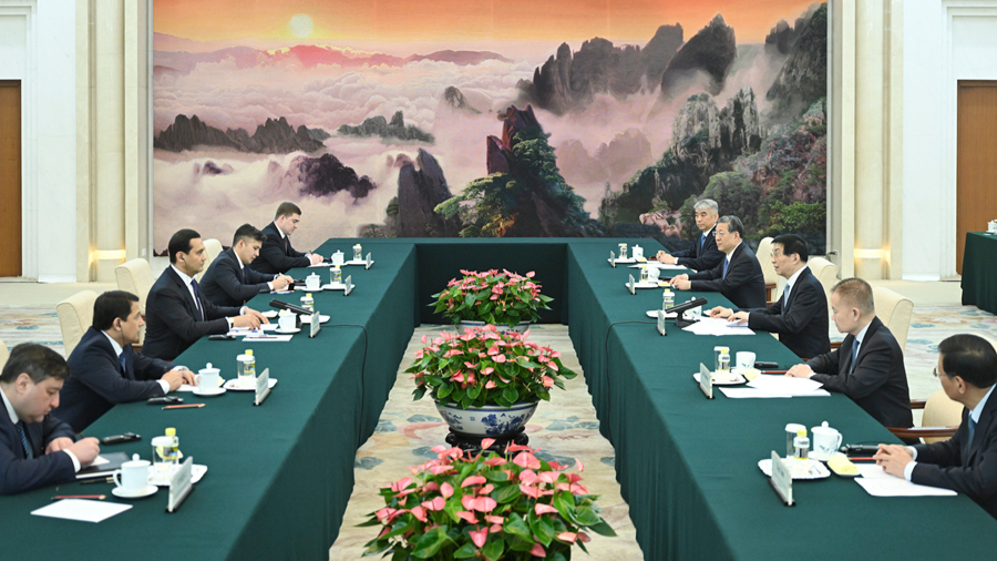 លោក Wang Huning សមាជិក​ការិយាល័យ​នយោបាយ​នៃ​គណៈកម្មាធិការ​មជ្ឈិម​បក្សកុម្មុយនីស្ត​ចិន​ជួប​ពិភាក្សា​ការងារជាមួយទីប្រឹក្សាប្រធានាធិបតីអ៊ូសបេគីស្ថានទទួល​បន្ទុក​ការងារអភិវឌ្ឍន៍​យុទ្ធសាស្រ្ត
