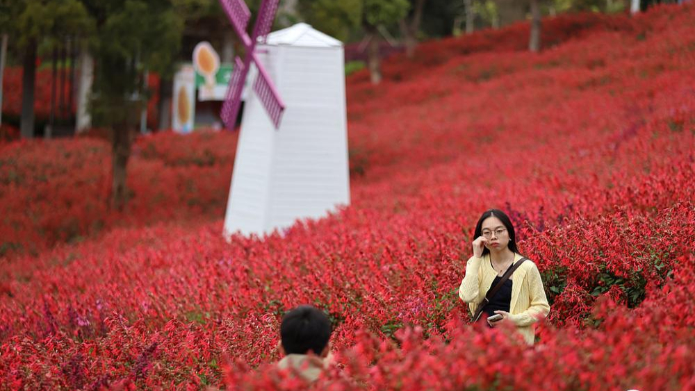 សមុទ្រ​ផ្កា​ក្រហម​នៅ​តំបន់​ទេសចរណ៍វេទិកាសមុទ្រ​ផ្កា​អង្គាសីល​ក្រុង​Xiamenប្រទេស​ចិនកំពុង​រីក​យ៉ាង​ស្គុស​ស្គាយ​